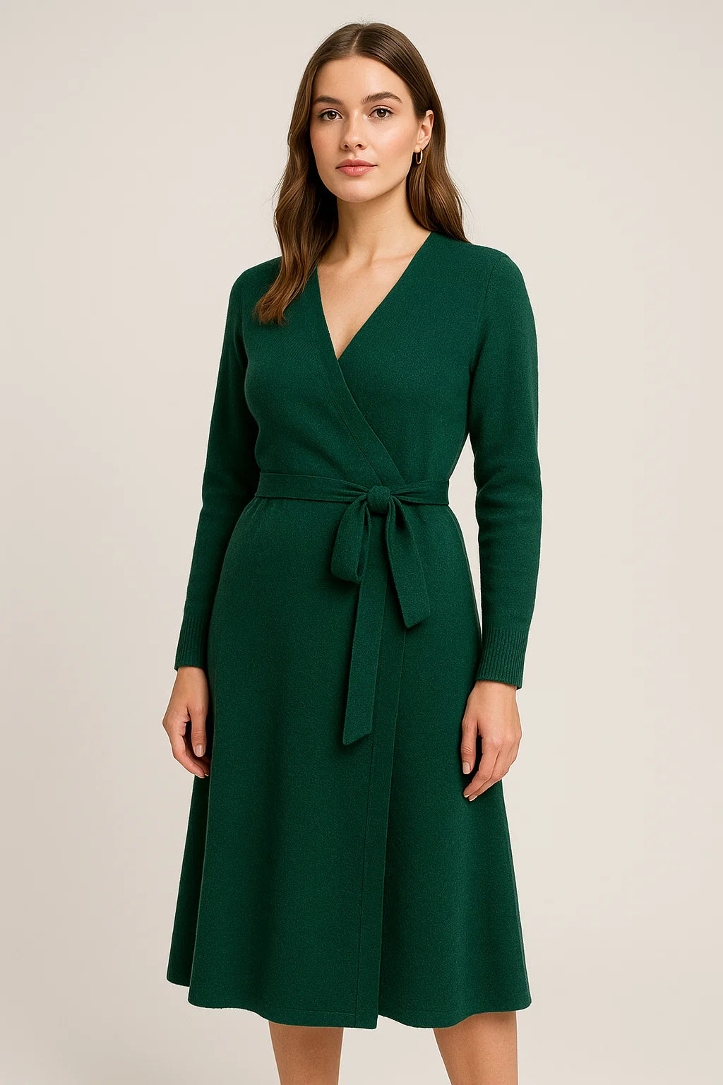 Elegant Double-Breasted Blazer Dress with Floral Belt Detail